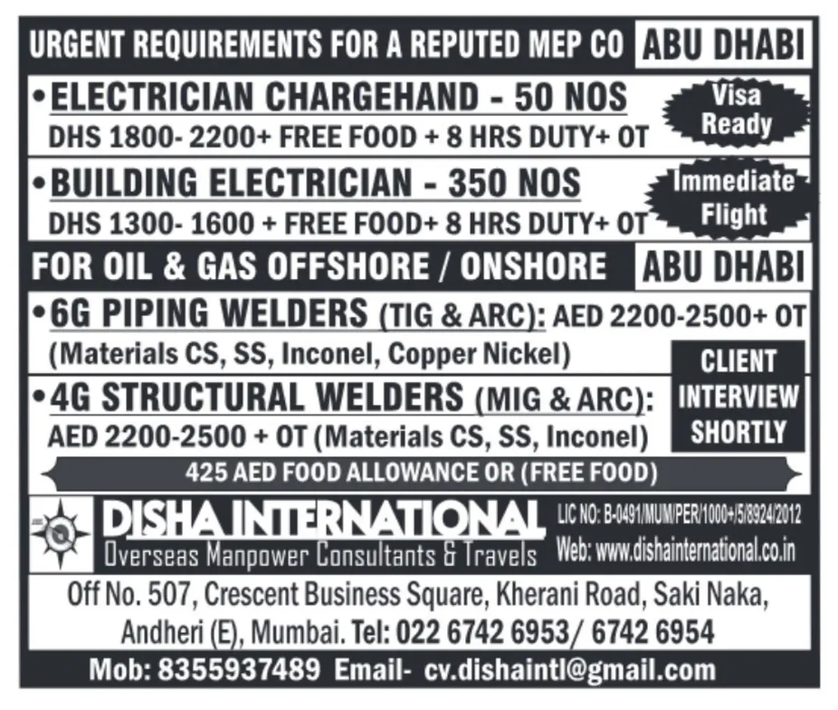 UAE Jobs 2025 – Direct Client Interview in Trichy for Engineers, Fitters & Welders