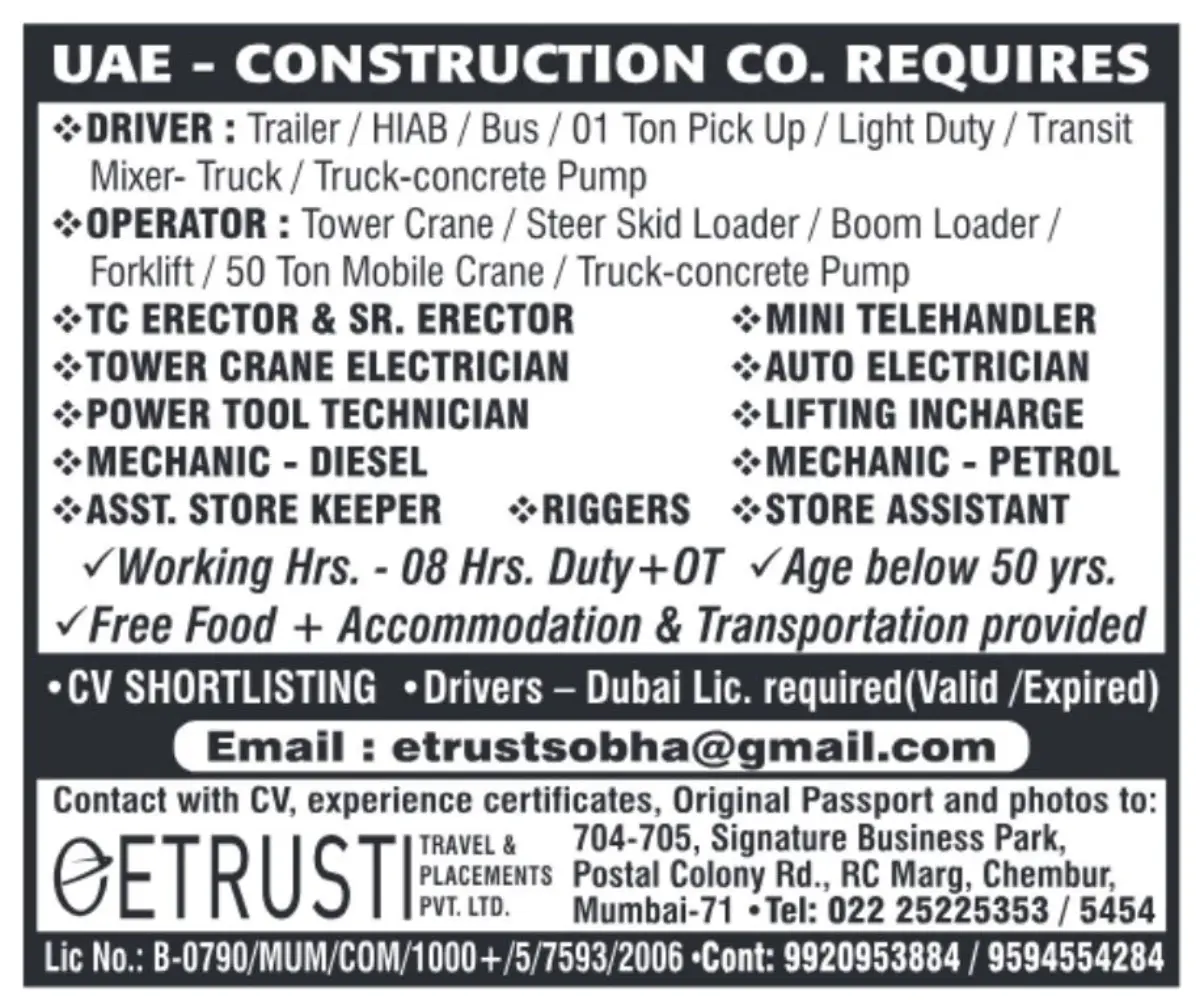 UAE Civil Construction Projects Jobs – Electrical BackgroundÂ